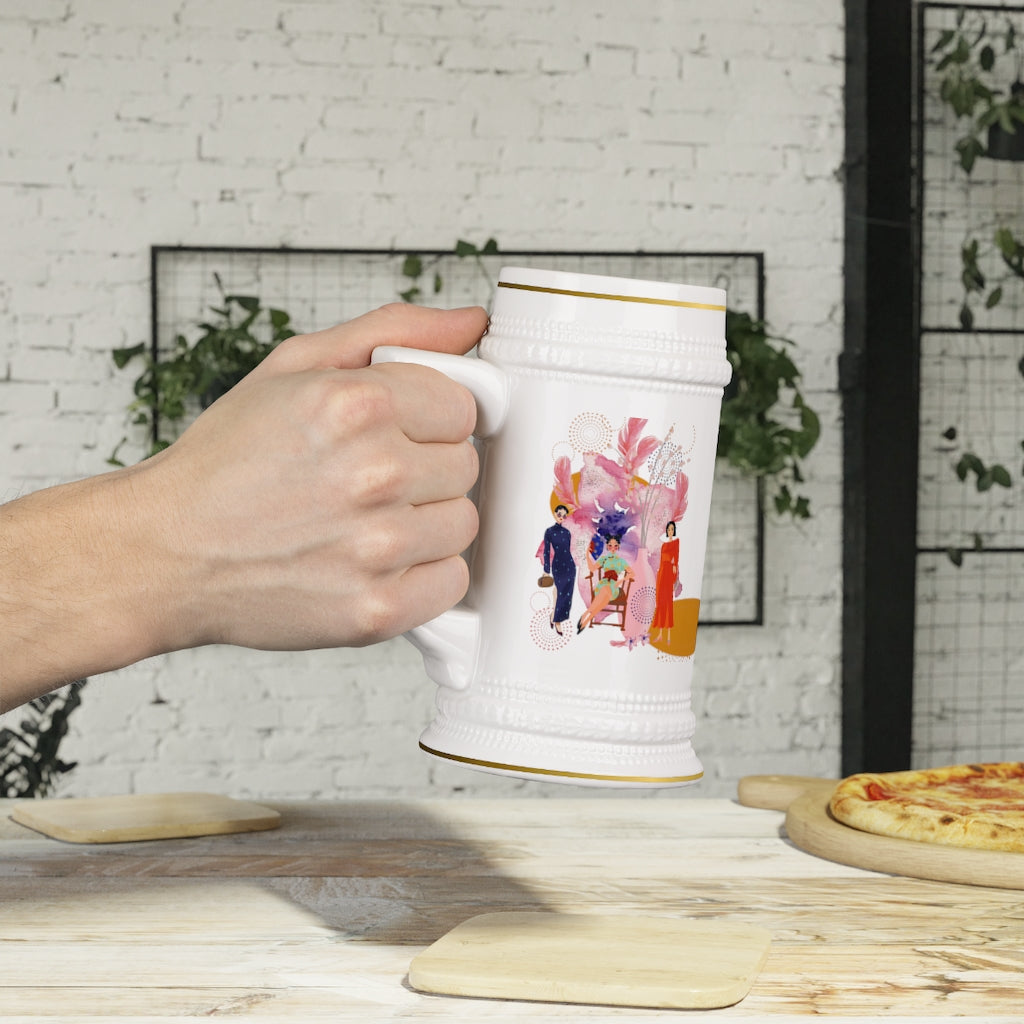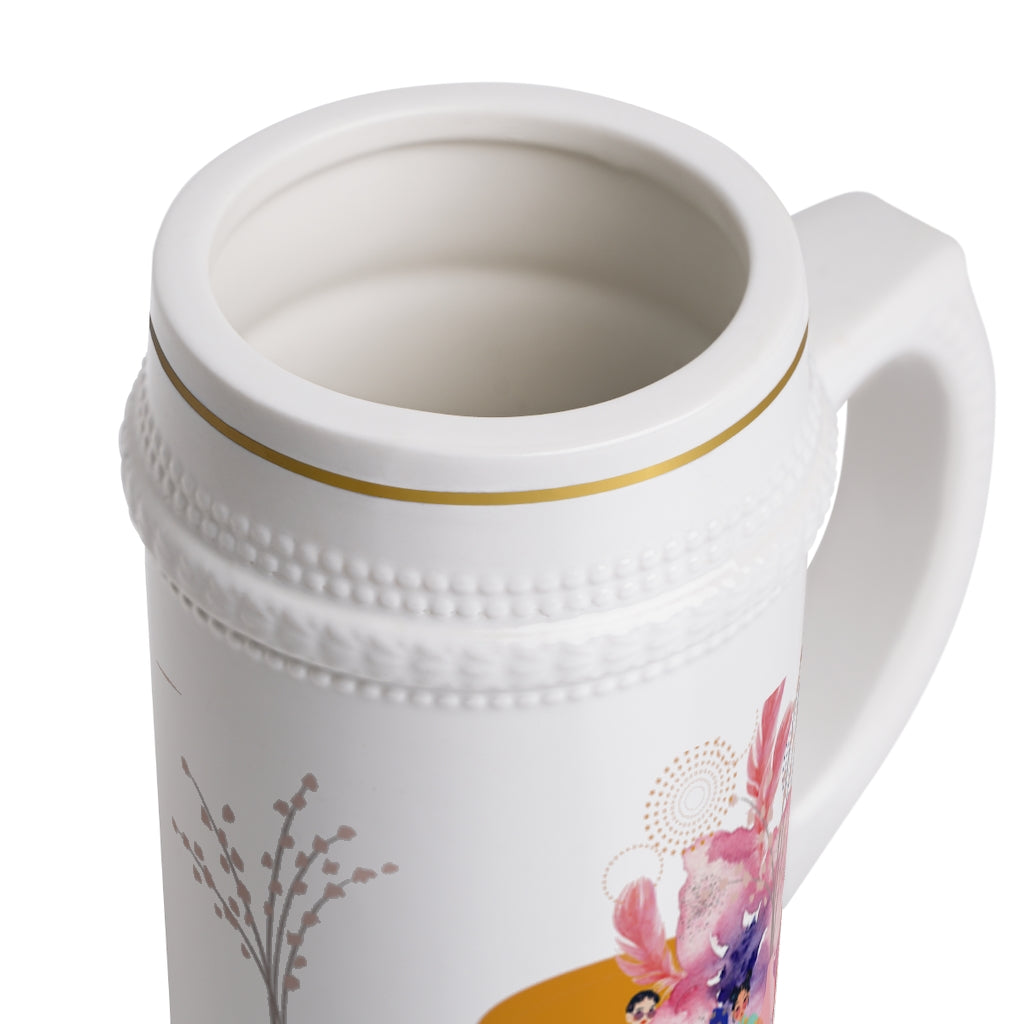 Packed with class and a timeless design, this stein mug awaits your custom designs to become a true work of art. Made with durable white ceramic material, these custom stein mugs are both scratch-resistant for long-lasting looks, and dishwasher-safe for convenient cleaning.