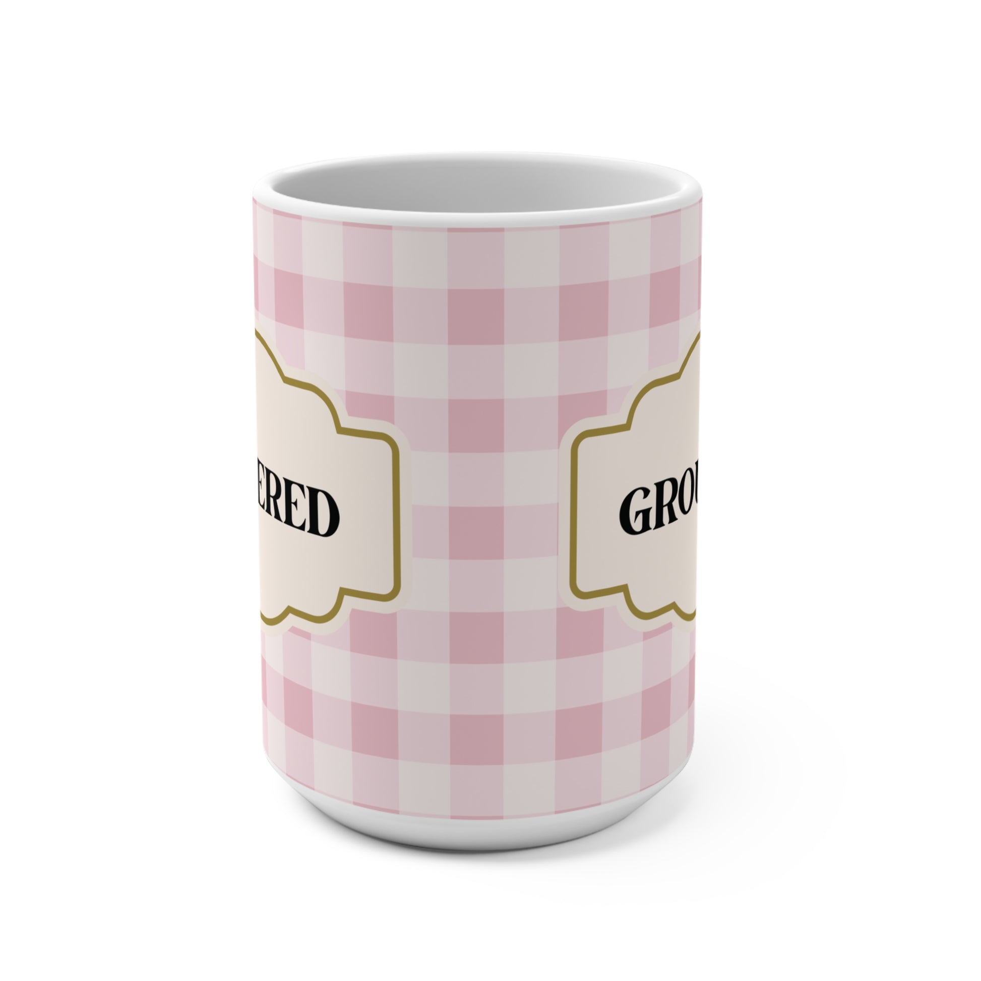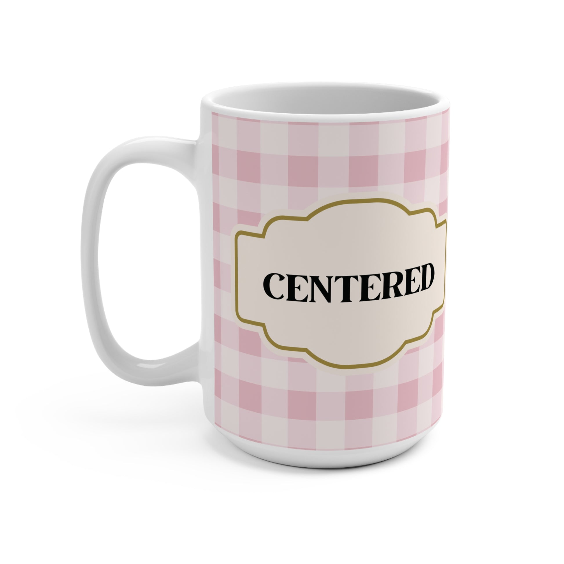 Grounded and Centered Therapist Pink Plaid Mug Gift Self-Care Healing Wellness Coffee Cup Healing Design Comfort Drinkware