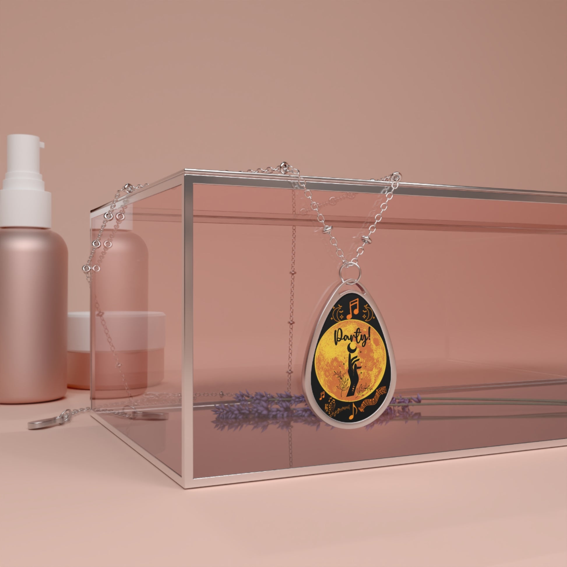 The pendant and its chain are made with robust brass material for dazzling looks that are long-lasting. The print panel is made with aluminum while the pendant itself comes in a unique shape of an ellipse.
