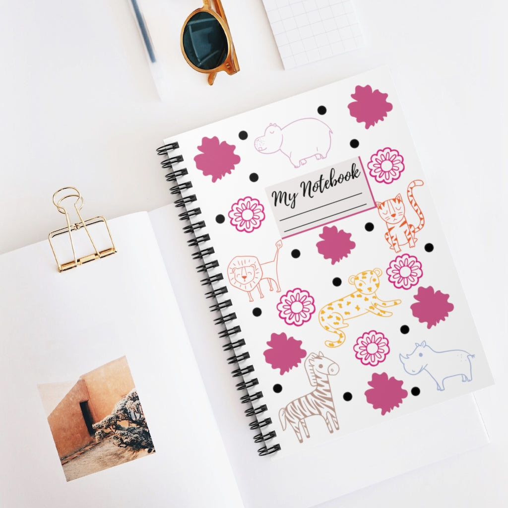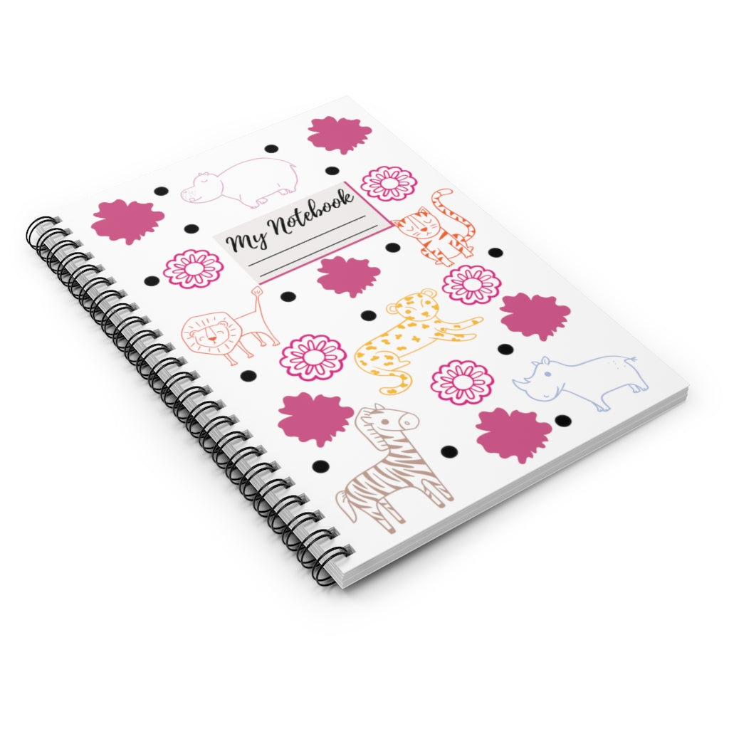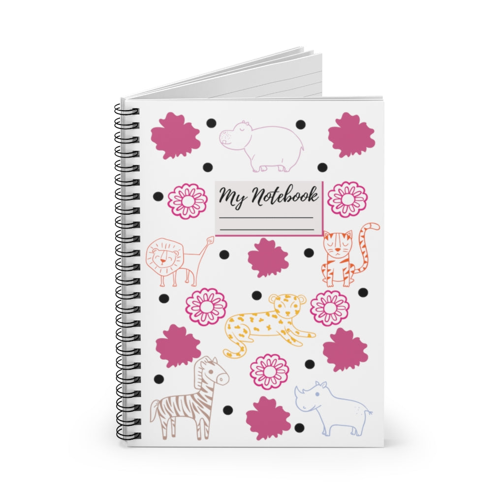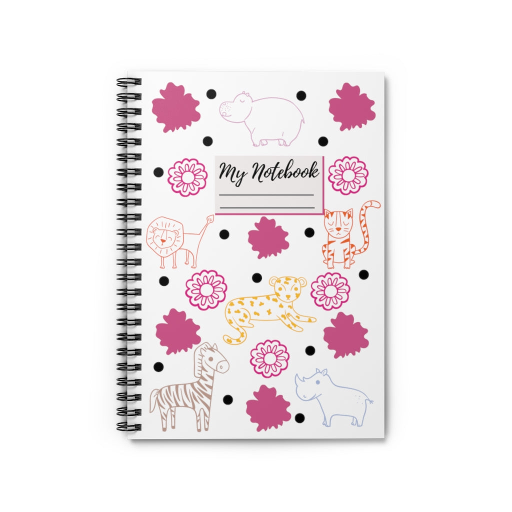 This puts the cool into going back to school! - This 118 page Jungle Animals spiral notebook with ruled line paper is the perfect companion book for your everyday school life. The durable printed cover proudly says "My Journal" with space to personalize and stake your claim.