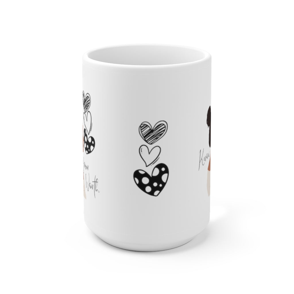 The seventh in the Hearts Design Collection, this Know Your Worth Mug is the perfect affirmation for a daily Mantra while sipping your favorite hot beverage. Buy for yourself and give as a gift. It will be highly appreciated by every true hot beverage lover. Be sure to collect other designs in the Hearts Collection.